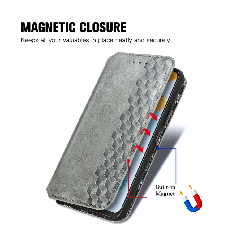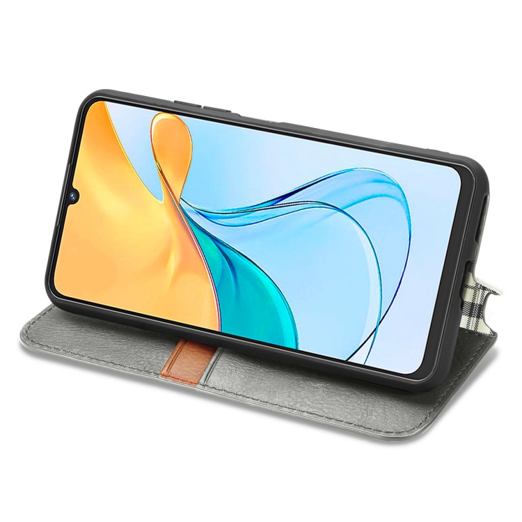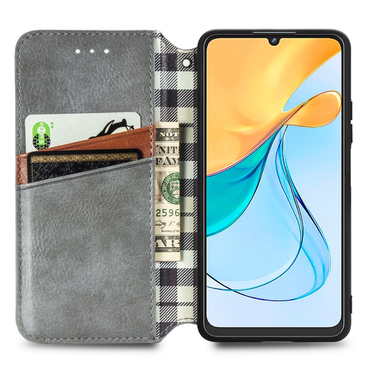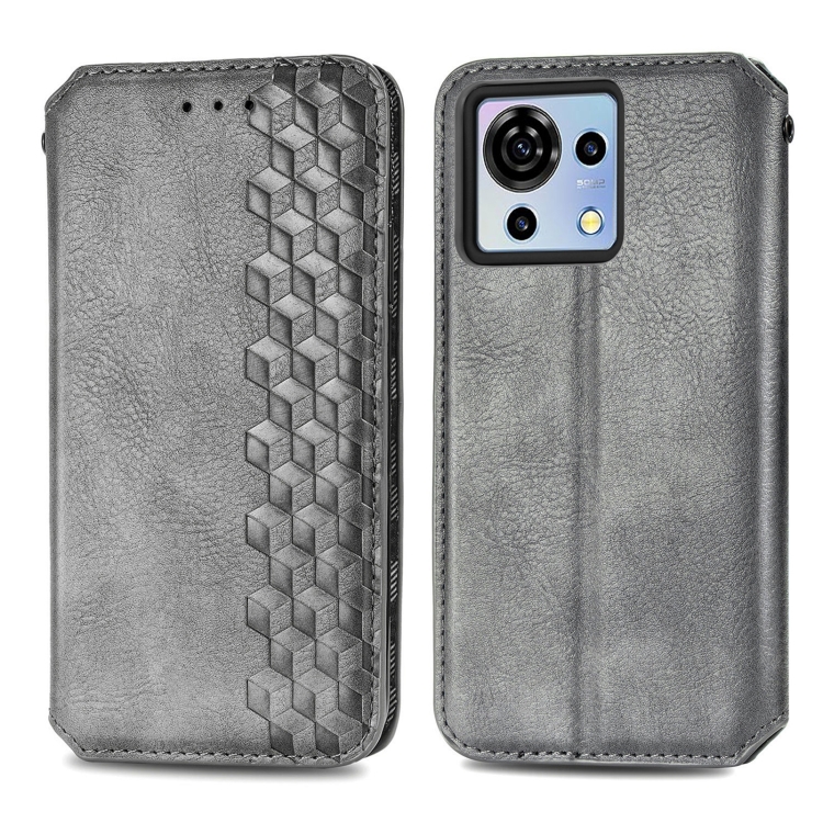 Funda de Cuero Magnético para ZTE Blade V50 Vita Cubic Grid (Gris)