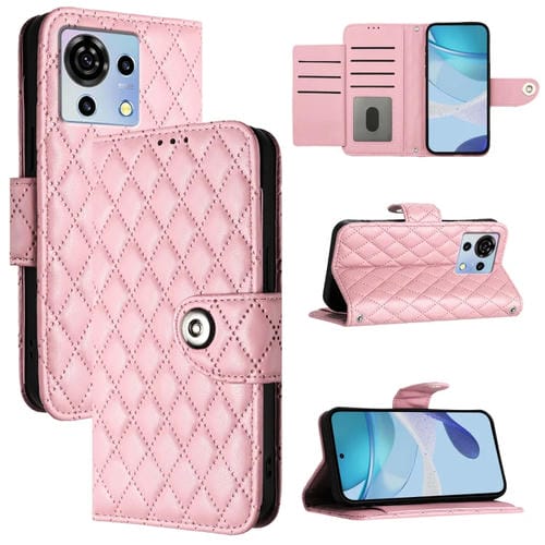 Funda para ZTE Blade V50 Vita de Cuero con Tapa Textura Rombal y Cordón (Rosa)