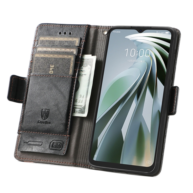 Funda de Cuero Caseneo para ZTE Libero 5G Iv con Hebilla Magnética Dual (Negro)