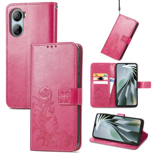 Estuche para ZTE Libero 5G Iv de Cuero en Relieve con Cierre de Cuatro Hojas (Rojo)