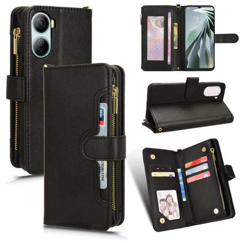 Funda de Cuero para ZTE Libero 5G Ⅳ con Cremallera y Textura Litchi (Negro)