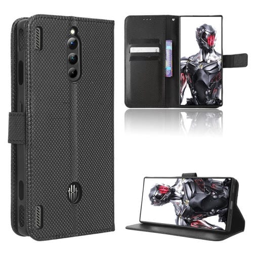 Funda de Cuero para ZTE Nubia Red Magic 8 Pro y 8 Pro+ con Textura de Diamante (Negro)