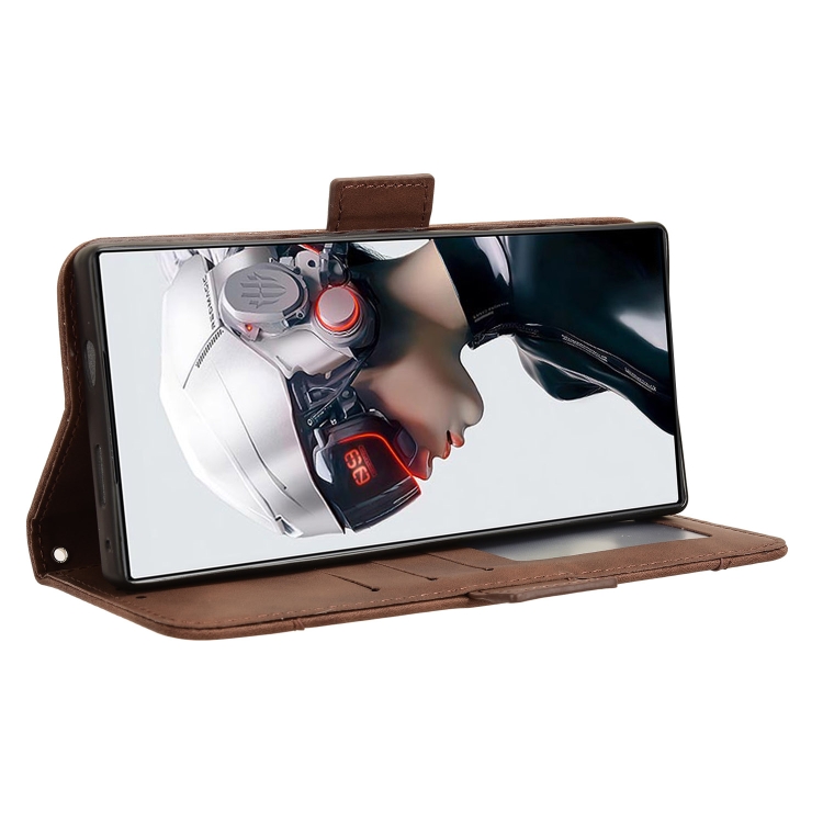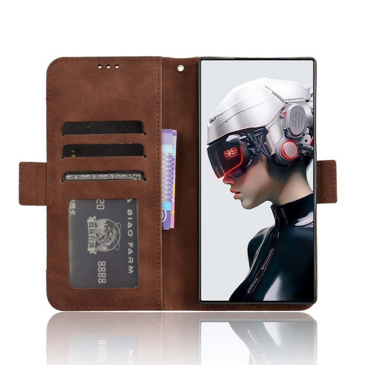 Funda de Cuero para ZTE Nubia Red Magic 9 Pro+ con Ranuras para Tarjetas y Textura Skin Feel Calf (Marrón)