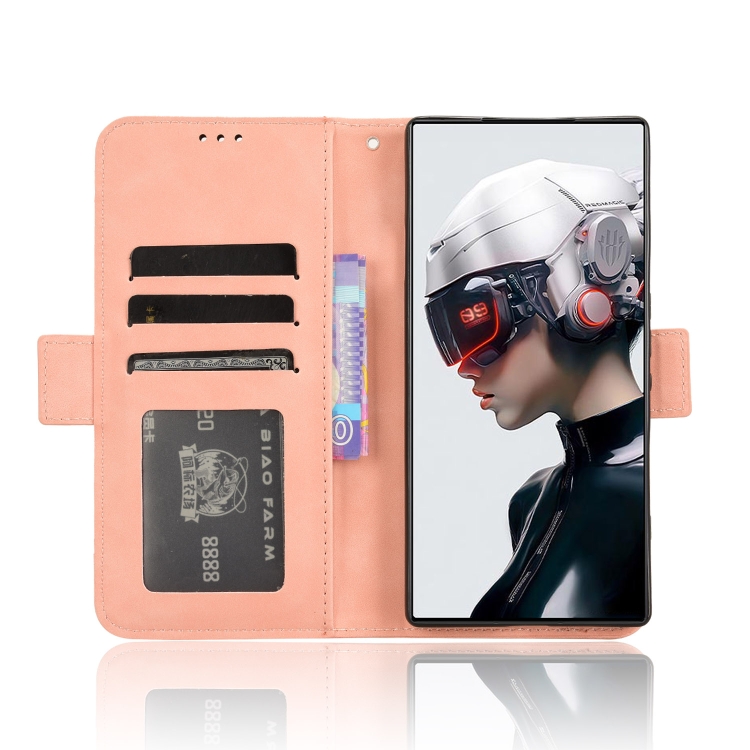 Funda de Cuero ZTE Nubia Red Magic 9 Pro+ con Ranuras para Tarjetas y Textura Skin Feel (Rosa)