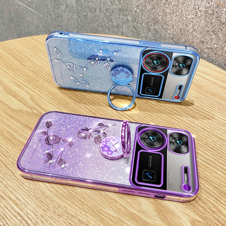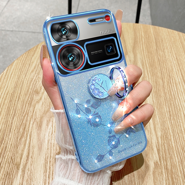 Estuche para ZTE Nubia Z60 con Anillo de Flor Inmortal y Brillo Ultra Degradado (Azul)