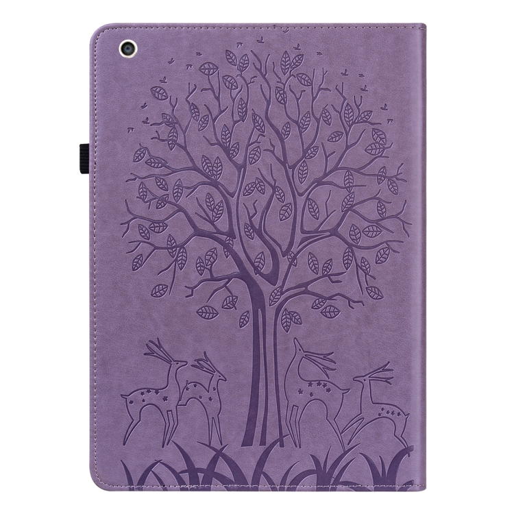 Funda para iPad Mini 5/4/3/2/1 Cuero PU Patrón Árbol y Ciervos Flip Horizontal con Soporte y Ranuras (Púrpura)