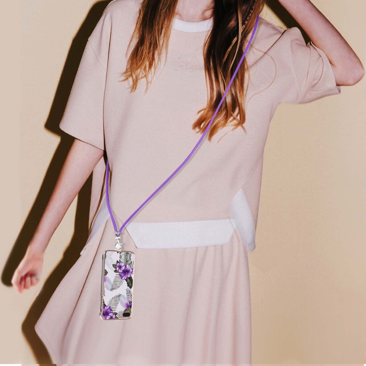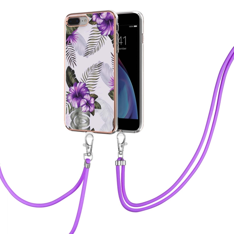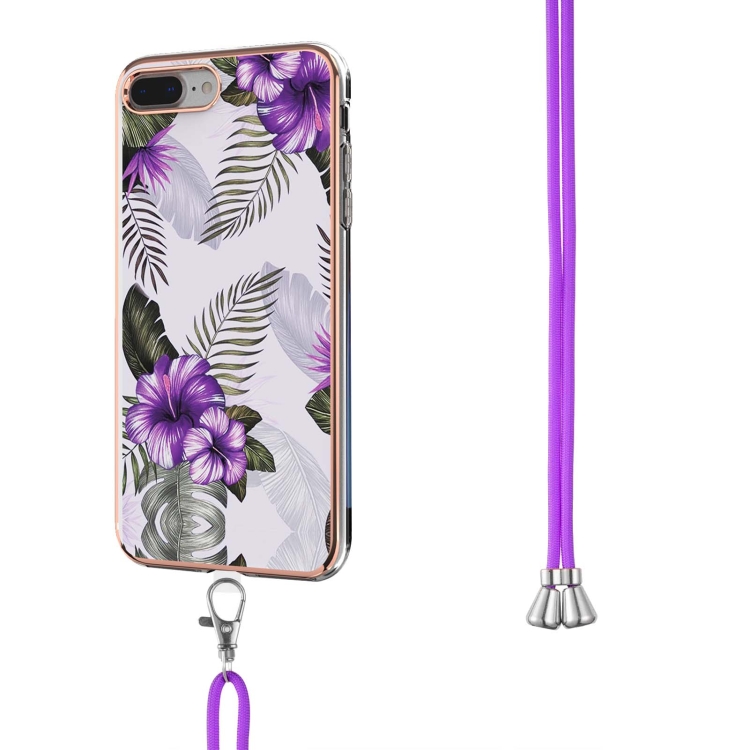 Funda TPU Patrón Galvanoplastia Imd a Prueba de Golpes con Cordón para iPhone 8 Plus / 7 Plus (Flor Púrpura)