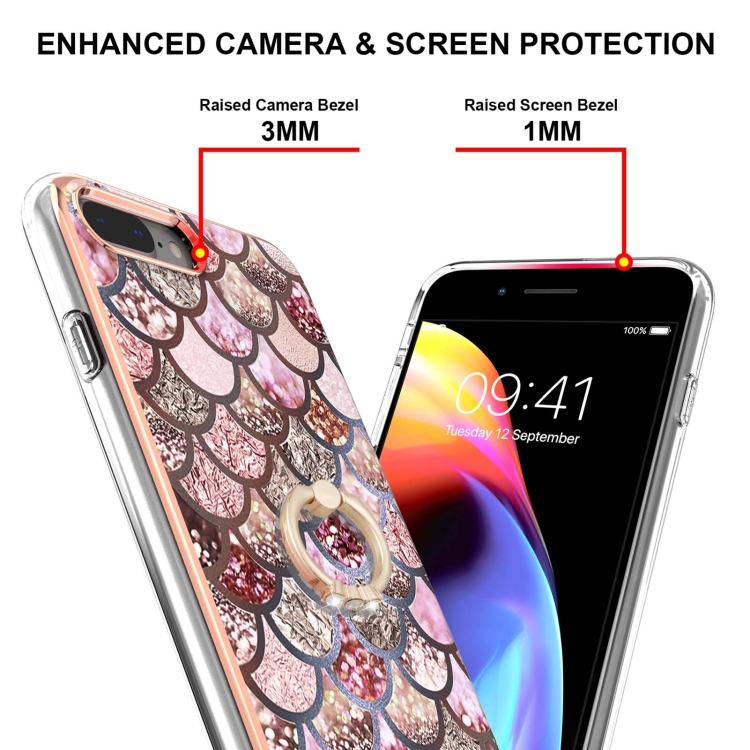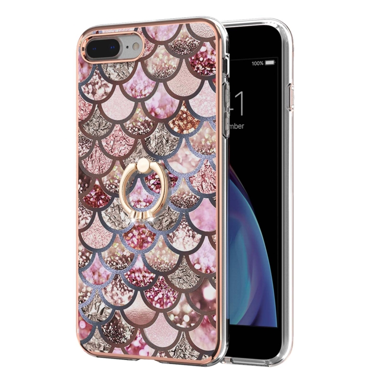 Funda TPU Imar Patrón Galvanoplastia Soporte Anillo Diamantes para iPhone 8 Plus / 7 Plus (Escalas Rosadas)