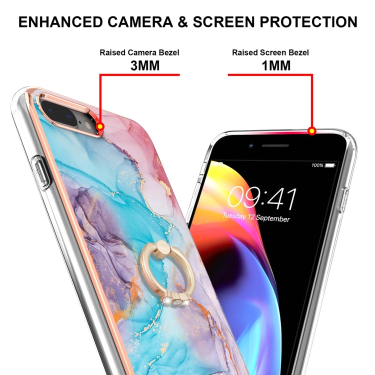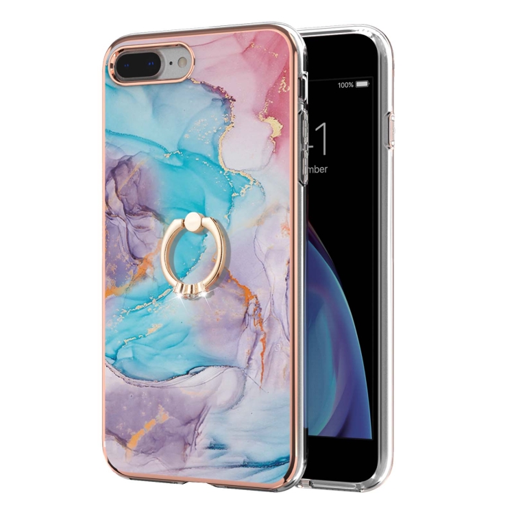 Funda TPU iPhone 8 Plus / 7 Plus Patrón Galvanoplastia Soporte Anillo Diamantes (Mármol Azul de la Vía Láctea)