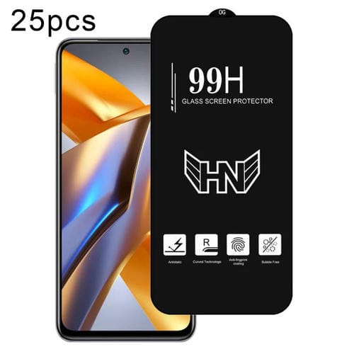 Película de Vidrio Templado de Pantalla Completa de Arco Grande de Aluminio Alto para Xiaomi Poco M5S, 25 Piezas