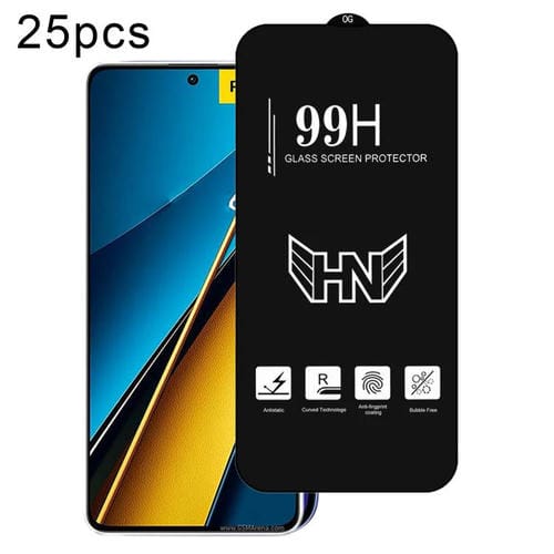 Película de Vidrio Templado de Pantalla Completa de Arco Grande de Aluminio Alto para Xiaomi Poco X6, 25 Piezas