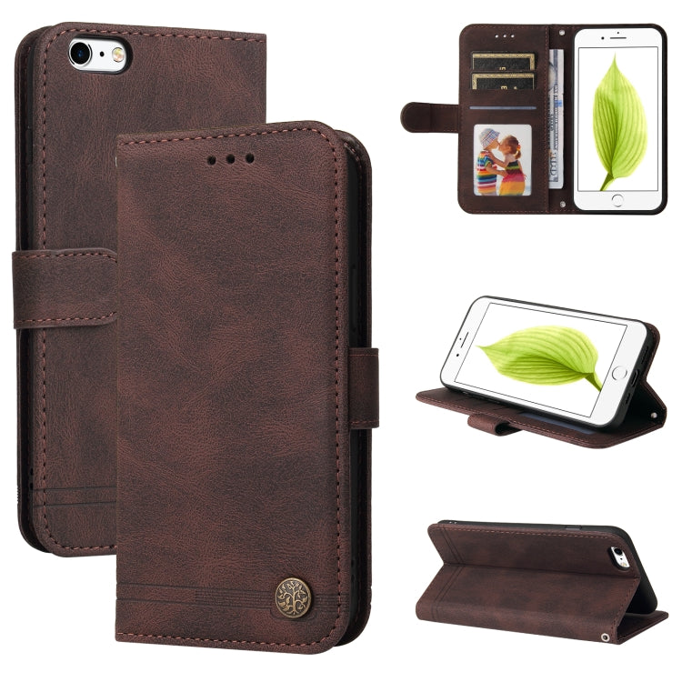 Funda de Cuero Fee Life Tree Metal Button Horizontal Flip para iPhone 6 Plus / 6S Plus con Soporte, Ranura para Tarjeta, Billetera, Marco y Correa de Fotos (Brown)