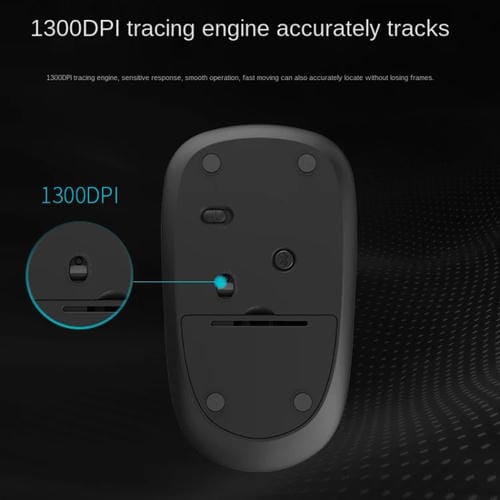 • Resolución fotoeléctrica de 1300 DPI, 3 teclas silenciosas, aceleración de 10g, distancia de funcionamiento Inalámbrica de 10 metros, tamaño de 113x64x30 mm, peso de 60 gramos, Alimentación mediante 1 Batería AA (no incluida)