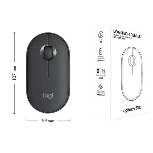 Ratón inalámbrico Bluetooth ultrafino de modo dual Logitech PEBBLE M350 de 1000 DPI (negro)
