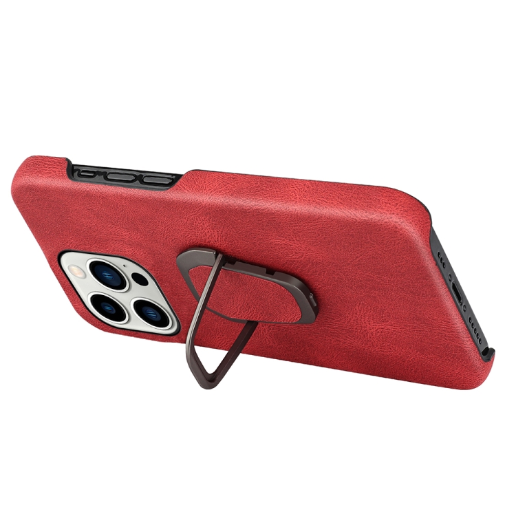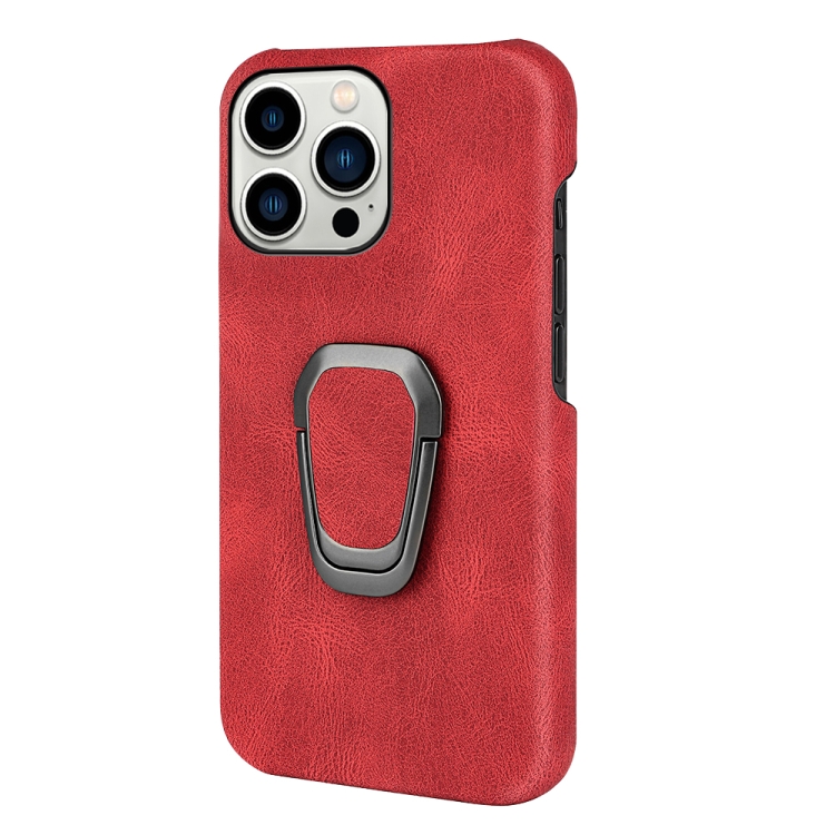 Funda para iPhone 14 Pro Ring Holder PU Phone Case (Rojo)