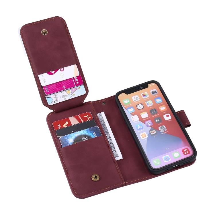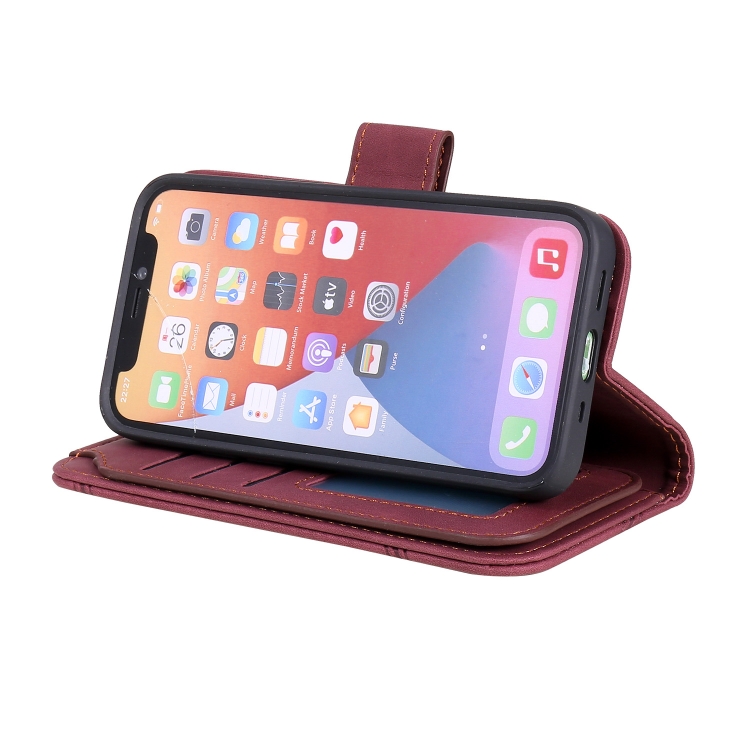 Funda Telefónica de Cuero Siente la Piel para iPhone 13 Mini con Flip Horizontal (Rojo)