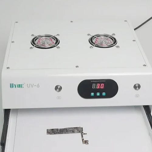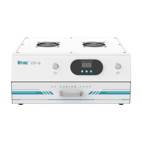 La Lámpara de Curado Inteligente Doble Tiempo Uyue UV-6 de 15 Pulgadas es un equipo especializado diseñado para el curado eficiente y preciso de Pantallas LCD, especialmente en dispositivos como Teléfonos Móviles y Tablets. Este modelo incorpora tecnología de curado UV de alta Potencia con una Fuente de luz compuesta por 72 perlas que aseguran una cobertura total y uniforme. Su diseño incluye una Pantalla Digital para el control del tiempo de curado y vacío, ajustable para adaptarse a distintos materiales y espesores, lo que la hace compatible con Pantallas curvas, rectas y Placas de Cubierta de hasta 15 pulgadas. Además, cuenta con un sistema de laminación al vacío que mejora la adhesión y evita deformaciones, ofreciendo resultados profesionales en procesos de Reparación y ensamblaje de dispositivos electrónicos.