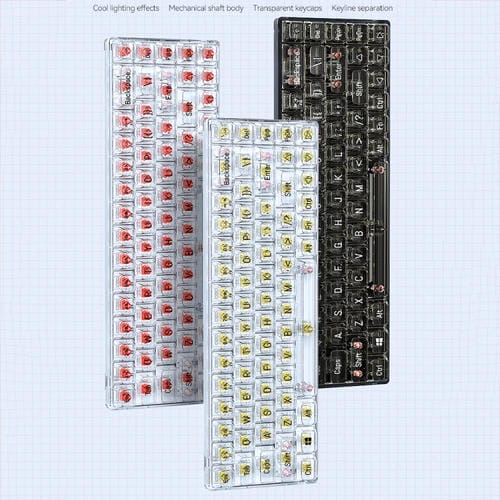 El Teclado mecánico T-Wolf T40 Transparente es un periférico diseñado para usuarios que requieren un equipo compacto y eficiente tanto para Juegos como para tareas de oficina. Cuenta con un diseño de 68 teclas que optimiza el espacio en el escritorio sin sacrificar funcionalidad. Sus teclas de Cristal de PC son Completamente transparentes, garantizando una alta durabilidad y una visualización clara de los caracteres, que no se desgastan con el uso prolongado. Equipado con ejes mecánicos de alta calidad disponibles en versiones Amarillo, Rojo y Azul, ofrece una respuesta rápida y precisa, ideal para quienes valoran una experiencia Táctil nítida y sin conflictos en pulsaciones simultáneas. La retroiluminación RGB mixta con ocho modos distintos permite personalizar la experiencia visual según las preferencias del usuario. Compatible con sistemas Windows, MacOS, iOS y Android, se conecta mediante un Cable USB-C desmontable de aproximadamente 1,5 metros, facilitando su almacenamiento y transporte.