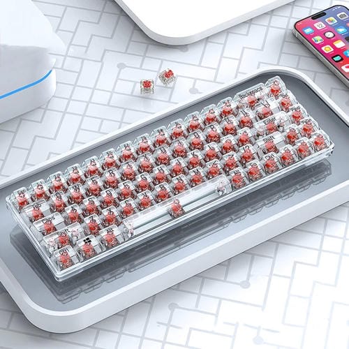 - 1x Teclado Mecánico T-Wolf T40 Transparente para Juegos y Oficina con Luz Mixta RGB de 68 Teclas (Rojo)