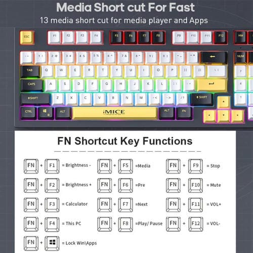 Teclado mecánico con cable iMICE GK-500 tipo C para juegos (negro)
