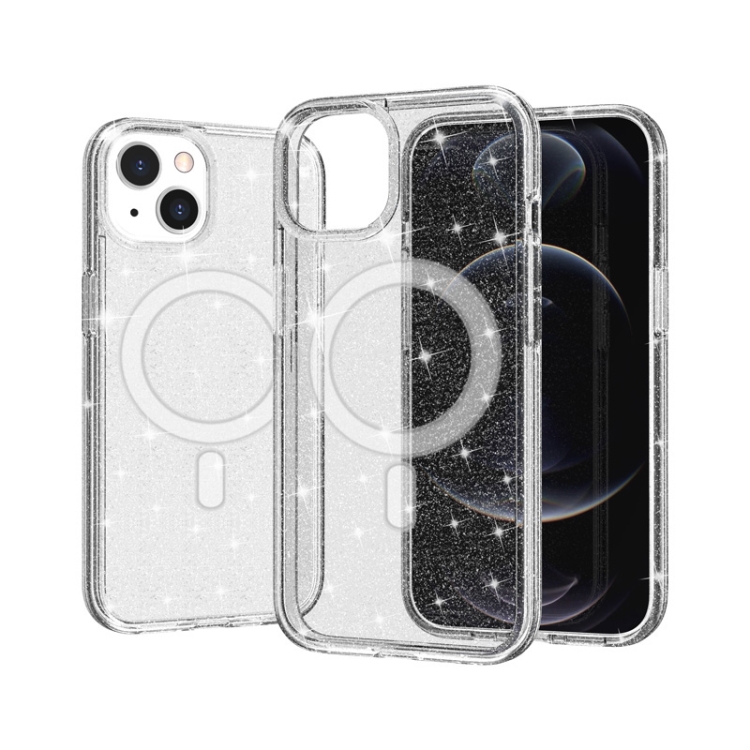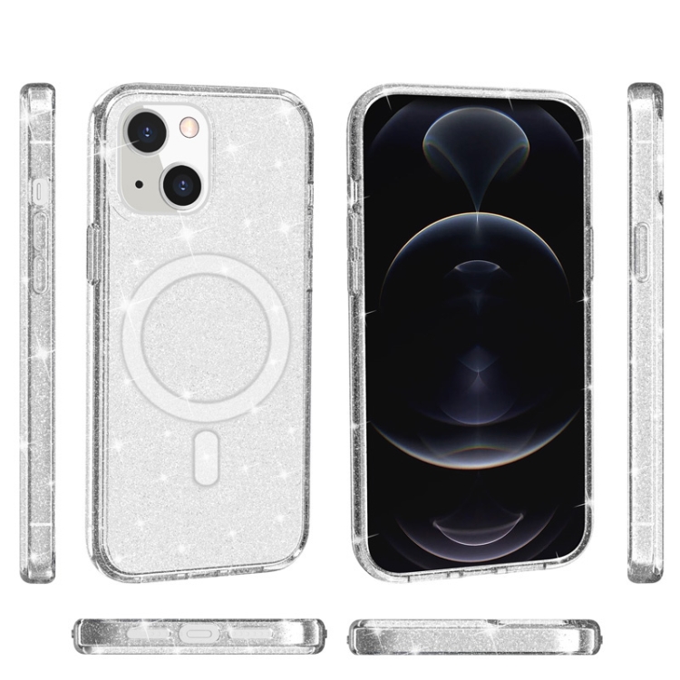 Funda para iPhone 13 Terminator Style Glitter Powder Magsafe Magnético (Blanco)