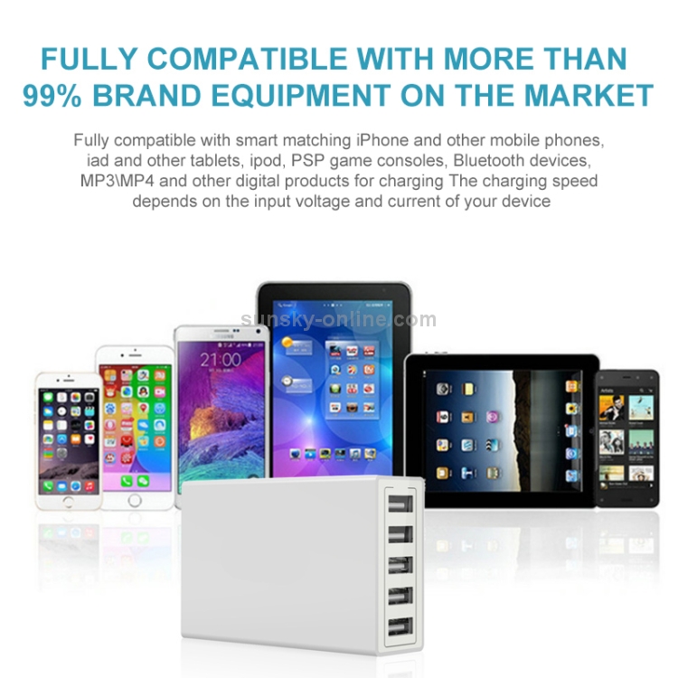 Cargador de viaje Xbx09 40W 5V 8A 5 puertos USB rápido (Blanco)