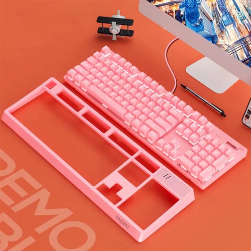 - 1x Teclado Mecánico Yindiao K300 USB Panel Desmontable Iluminación Eje Azul con Cable (Rosa)