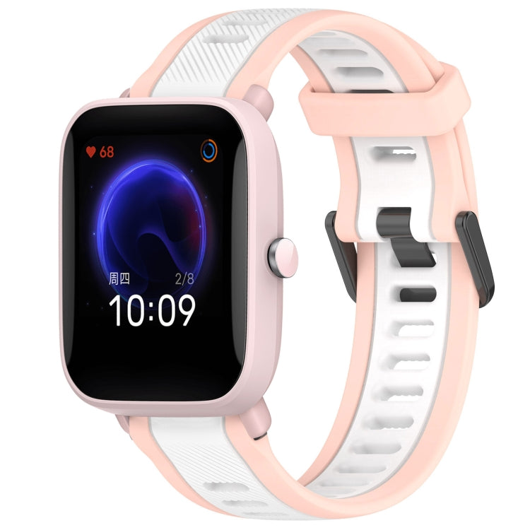 Correa de Reloj para Amazfit Pop Silicona Texturizada Dos Colores 20mm (Blanco + Rosa)