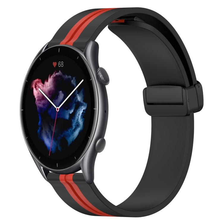 Correa de Silicona para Amazfit GTR 3 22mm con Cierre Magnético Plegable (Negro + Rojo)