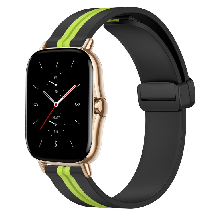 Correa de Reloj para Amazfit GTS 2 20mm Silicona Cierre Magnético Plegable (Negro + Verde Lima)