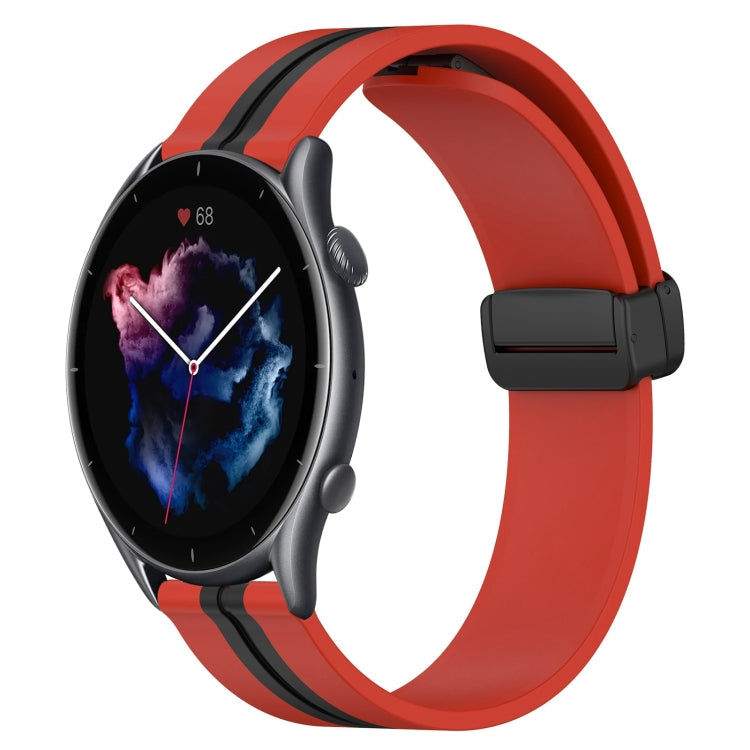Correa de Reloj Silicona para Amazfit GTR 3 22mm con Cierre Magnético Plegable (Rojo + Negro)