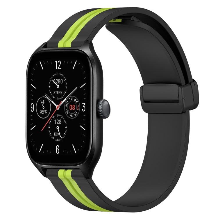 Correa de Reloj para Amazfit Pop 20mm Silicona con Cierre Magnético Plegable (Negro + Verde Lima)