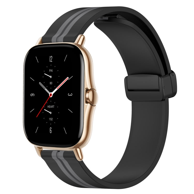 Correa de Reloj para Amazfit GTS 2 20mm Silicona con Cierre Magnético Plegable (Negro + Gris)