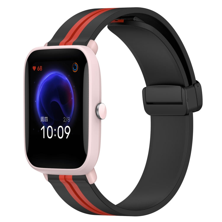Correa de Reloj 20mm Amazfit Pop Silicona Cierre Magnético Plegable (Negro + Rojo)