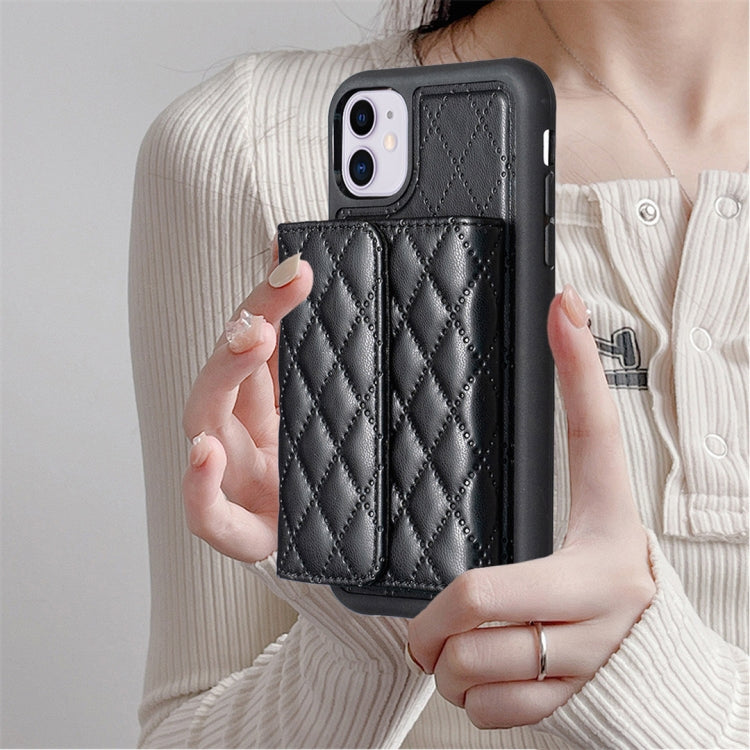 Funda Cartera Horizontal iPhone 11 Rhombic Leather Phone Case (Negro)