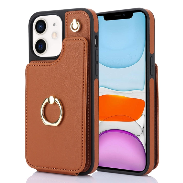 Funda para Teléfono Ym006 para iPhone 11 con Soporte para Anillo y Tarjeta (Marrón)