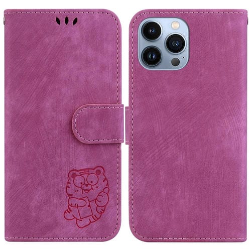 Estuche para Teléfono iPhone 13 Pro Cuero con Relieve Little Tiger (Rojo Rosa)