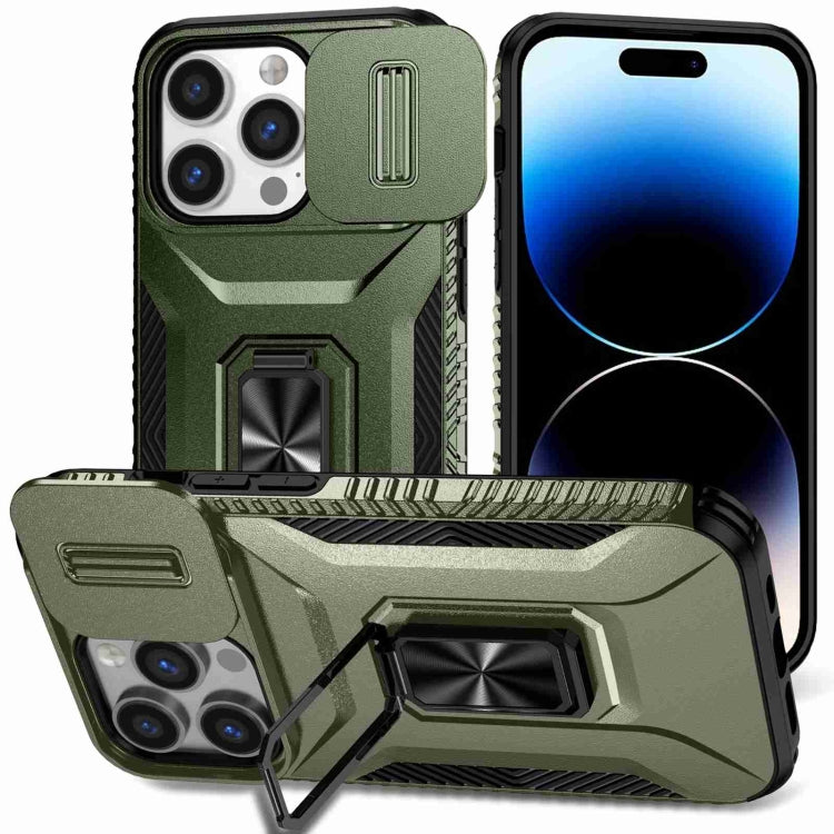 Funda para Teléfono iPhone 13 Pro Sliding Camshield Magsafe Holder TPU Hybrid PC (Verde Oscuro)