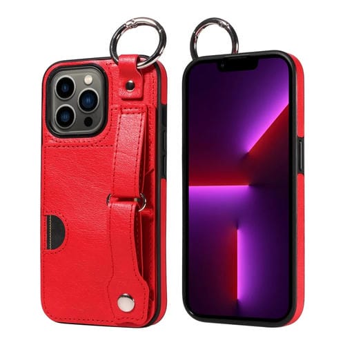 Funda para Teléfono iPhone 13 Pro con Anillo y Ranura para Tarjeta Textura de Pantorrilla (Rojo)