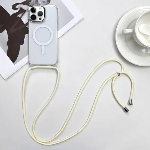 Funda para Teléfono iPhone 13 Pro Magsafe Magnetic PC + TPU con Cordón (Blanco Cremoso)