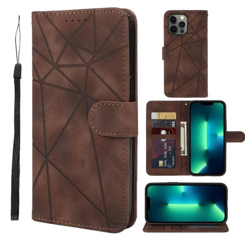 Funda para iPhone 13 Pro Skin Feel Cuero Líneas Geométricas (Marrón)