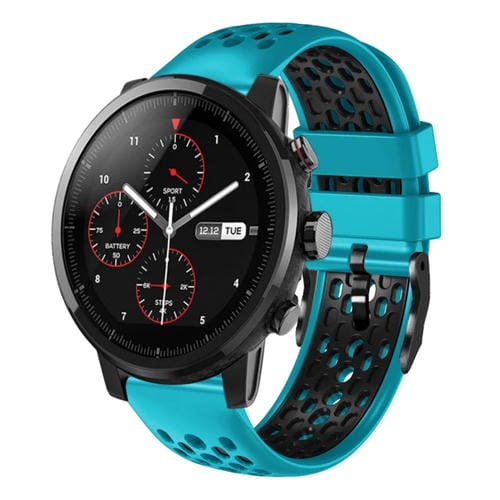Correa de Reloj Amazfit Stratos 22mm Silicona Transpirable Dos Colores (Azul Cielo + Negro)