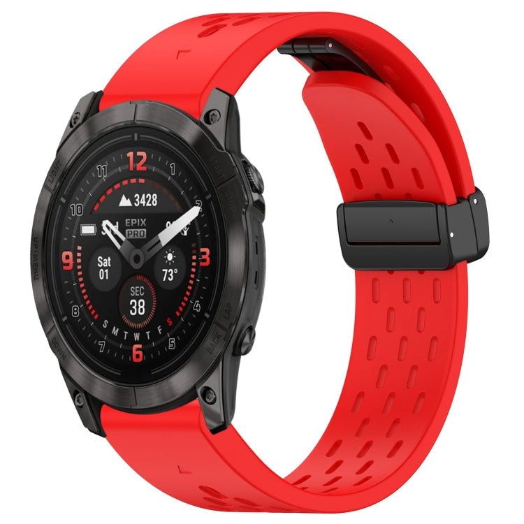 Correa de Reloj de Silicona para Garmin Epix Pro con Hebilla Magnética y Orificios 51mm (Rojo)
