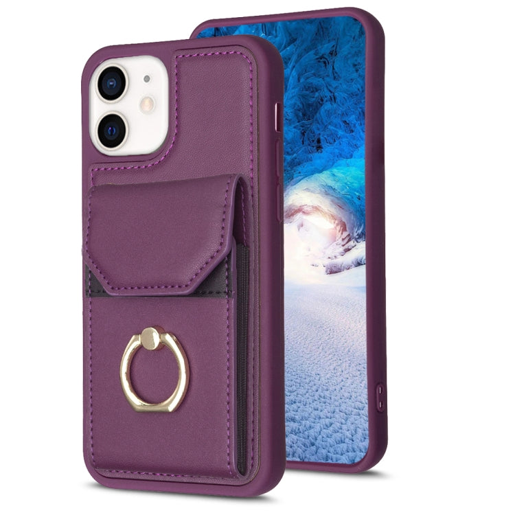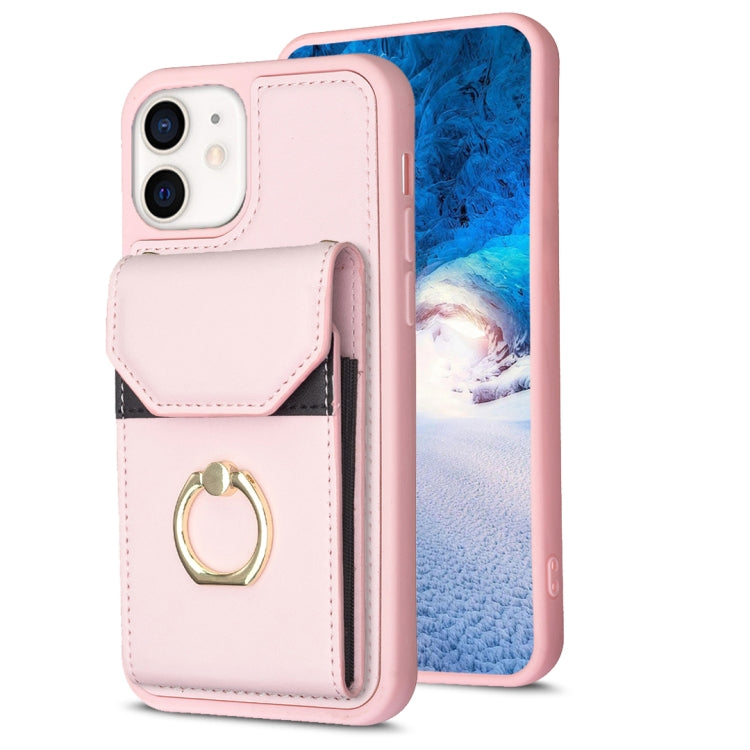 Funda para teléfono Bf29 iPhone 11 con soporte para anillo y bolsa para tarjeta de órgano (Rosa)