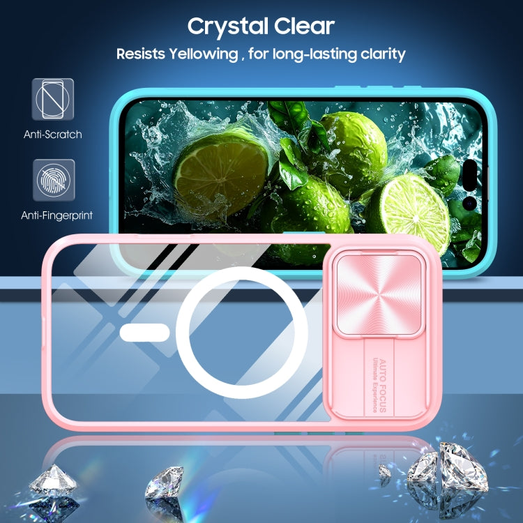 Funda para iPhone 16 Pro Max Cubierta Deslizante Acrílico PC TPU Magsafe (Rosa + Cian)