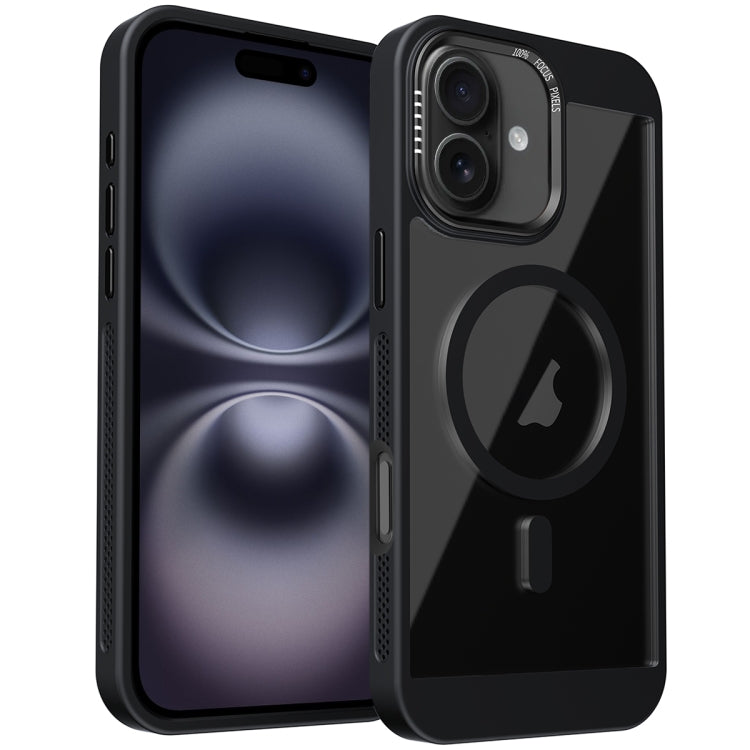 Funda para iPhone 16 Plus Cubierta Deslizante Acrílico Transparente PC TPU Magsafe (Negra)