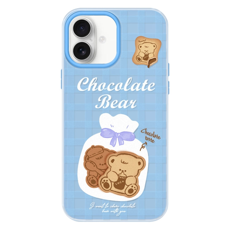 Funda híbrida TPU y Policarbonato iPhone 16 Tacto Sedoso (Azul Oso Galleta)