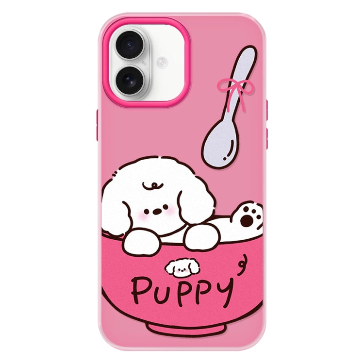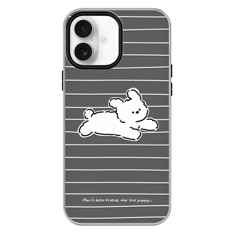 Funda híbrida TPU Policarbonato para iPhone 16 con Tacto Sedoso (Running Puppy Black)