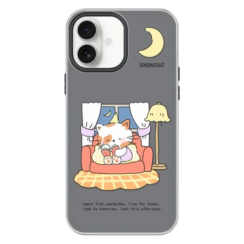 Funda híbrida TPU y Policarbonato iPhone 16 Plus Gato de Entrenamiento Nocturno (Negro)