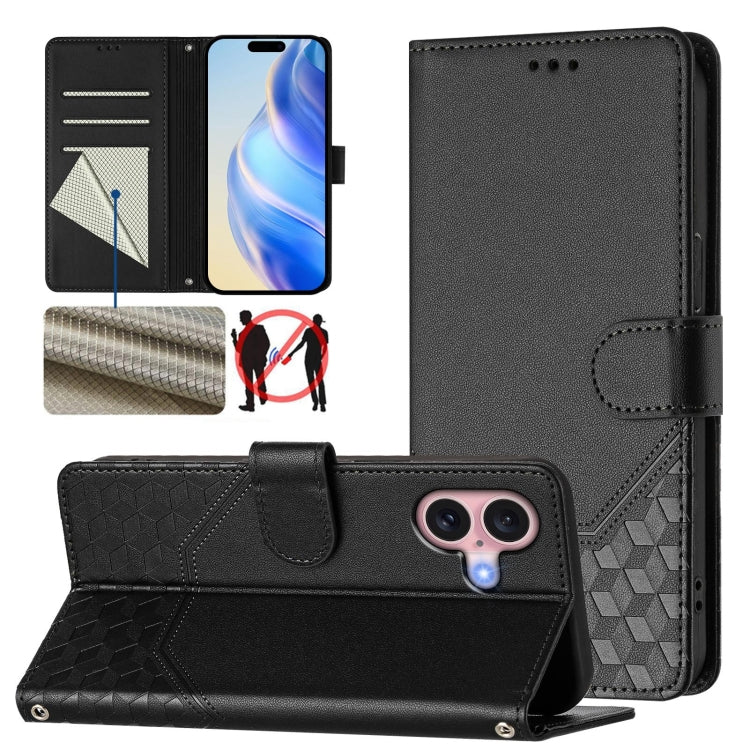 Funda de Cuero Rfid con Relieve en Panal para iPhone 16 Plus (Negra)